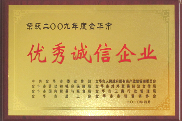 2009年度金华市优秀诚信企业