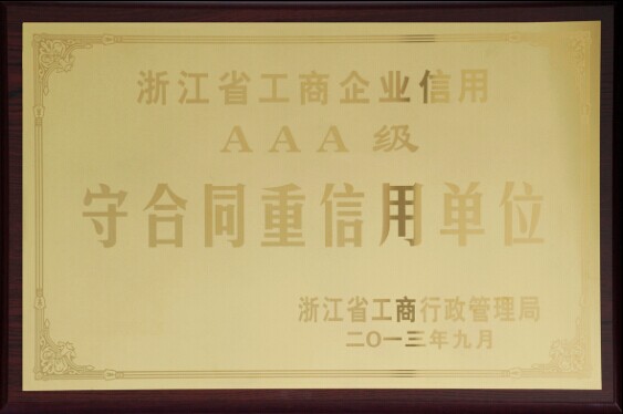 浙江省工商企业信用AAA级守合同重信用单位