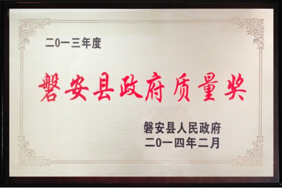 2013年度磐安县政府质量奖