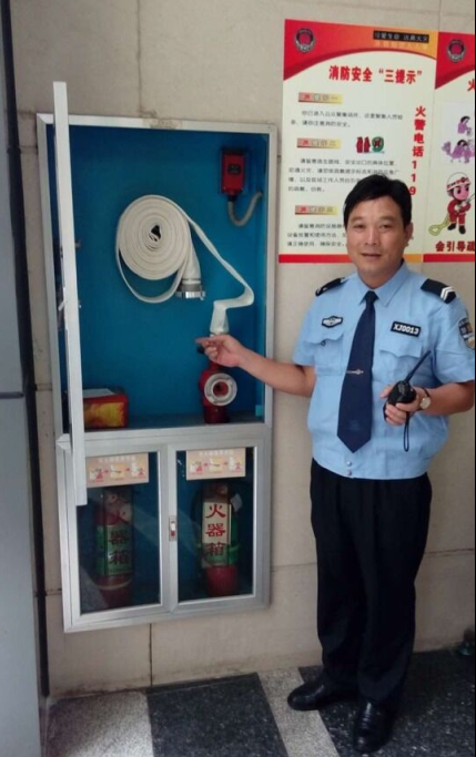金伟军,和美金磐大饭店保安队长,四十有余,性格开朗、为人和善,用一个网络词形容“大叔级暖男”。于工作,态度严谨、一丝不苟、思想过硬,是保安队的楷模。在他看来,刚入职时,是自己选择了这份职业,也是这份职业选择了自己,那么自己就得把这份工作做好。他说热爱保安这个职业,就是把公司当成自己的家,把工作当成自己的家务事,他的理念是“不是谁要我管,而是我自己要管,而且要管好”。要把队伍管好,就要做到要求队员做到的,自己首先要做到。