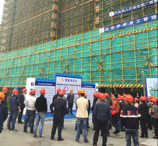 为积极贯彻落实住建部工程质量治理两年行动方案,进一步深化2015年“质量月”活动,做好建设工程质量安全管理工作,总结和推广优质项目的标准化效果和经验,不断提高工程质量水平。11月21日,集团公司在紫金玉澜二期项目部组织召开工程质量管理现场观摩交流会,分公司负责人、各在建工程项目负责人及技术负责人等两百余人参加了此次现场观摩会。