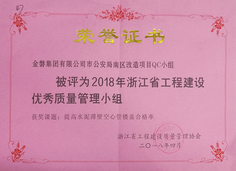 2018年浙江省工程建设优秀质量管理小组