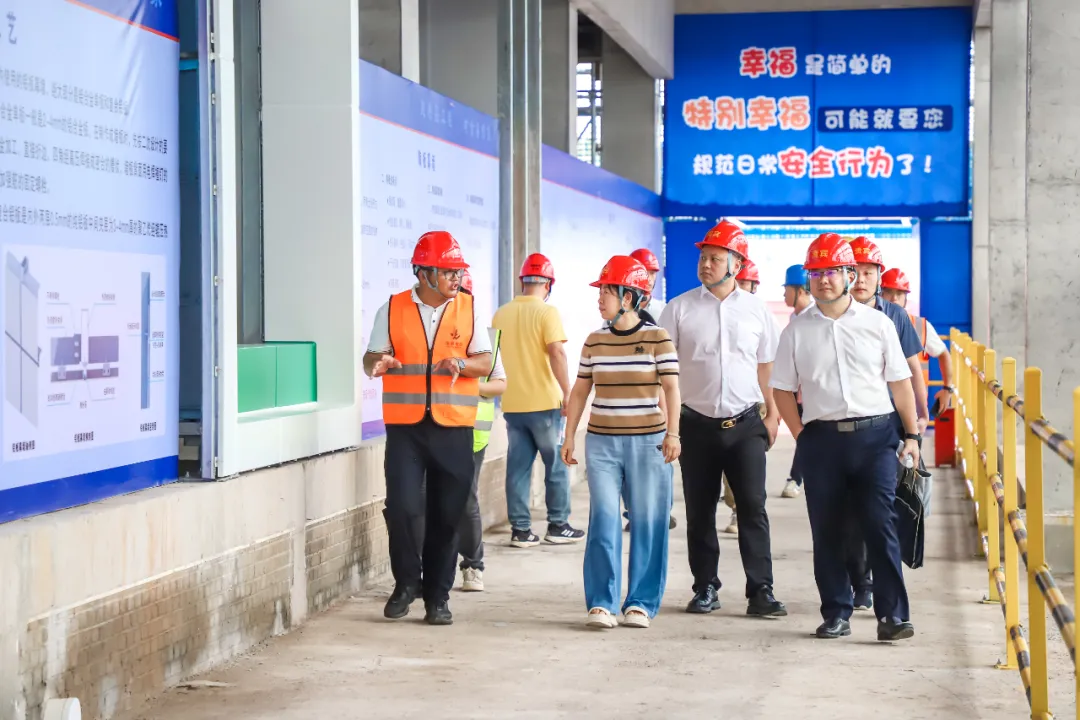 参会人员认真观摩了智慧工地指挥中心、高支模展示区、智能电梯展示区、有限空间展示区、可调盘扣外架体系展示区、工艺样板展示区等等区域,仔细聆听该项目智慧建造在质量、安全管理方面的运用,并积极与现场工作人员互动交流。与会人员纷纷点赞项目现场安全文明施工布置及展现的工艺水平,在感受现代化工地魅力的同时,对项目在质量、安全管理标准化上取得的成效给予了一致好评。