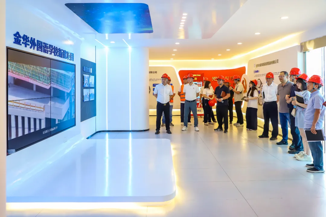 金华市外国语学校新建项目是省属重点项目,建成后对金东区乃至整个金华市教育系统优化配置教育资源都具有重要意义。项目从创建伊始,建设各方就高度重视,集团更是投入了大量人力、物力和财力,特别是在技术人才队伍的配置上集聚了各路精兵强将。面对该项目结构复杂、装配率高、施工难度大等问题,技术团队多次召开专题研讨会、专项方案专家论证会,研究解决施工过程中存在的技术难点问题。