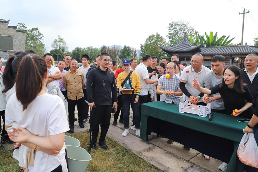 百发百中项目,大家全神贯注地调整投球的力度和角度,力求让每个乒乓球能够顺利投进球框且不弹出。这个项目,考验的是大家投球的技巧与心态,在既定的时间里,队员之间相互配合,不断调整策略,每一次精准的投球都伴随着欢呼与鼓励。